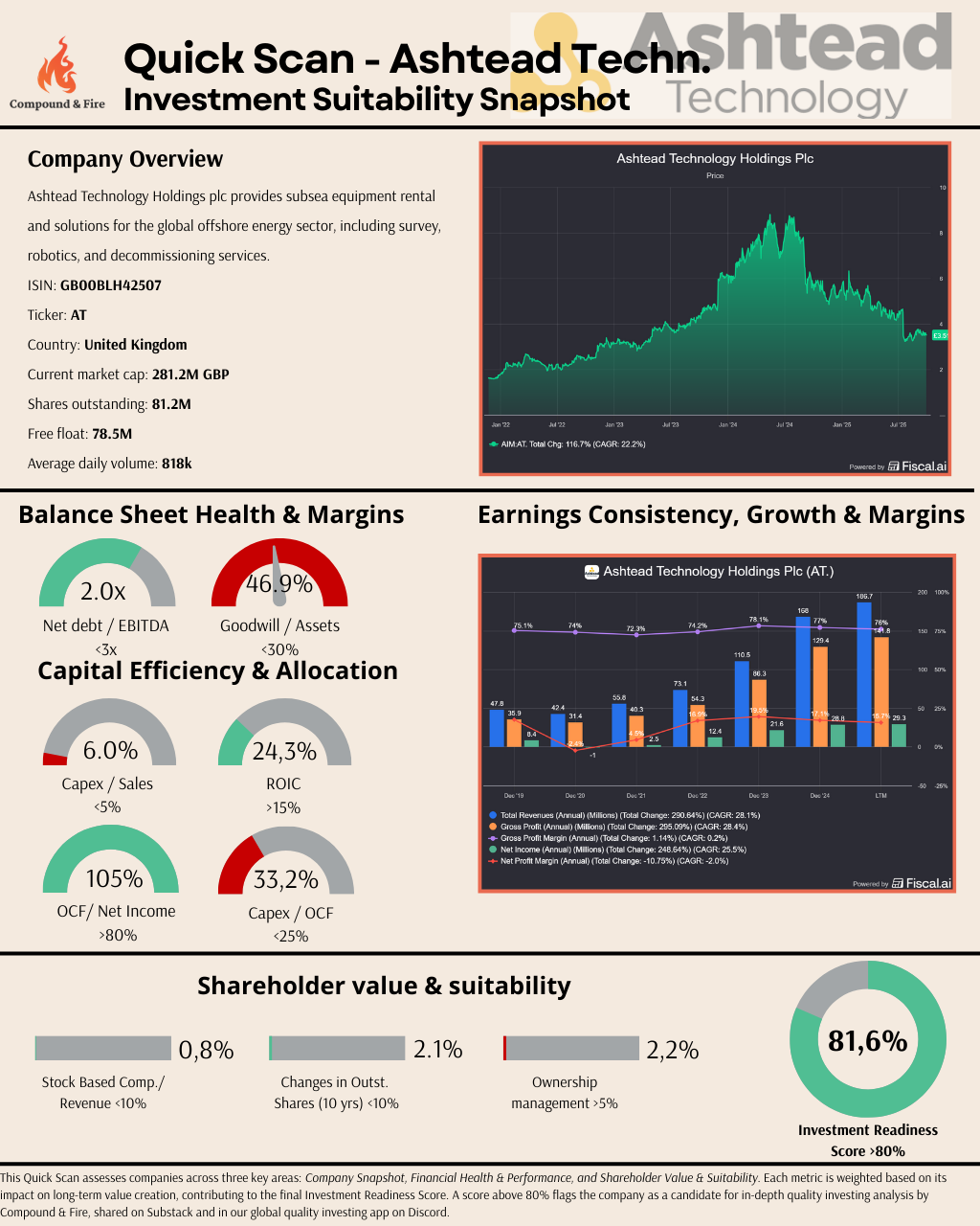 Here is an earlier shared Quick Scan of Ashtead Technologies. It shows an Investment Readiness Score of 81.6%, which makes it ready for a deep dive.