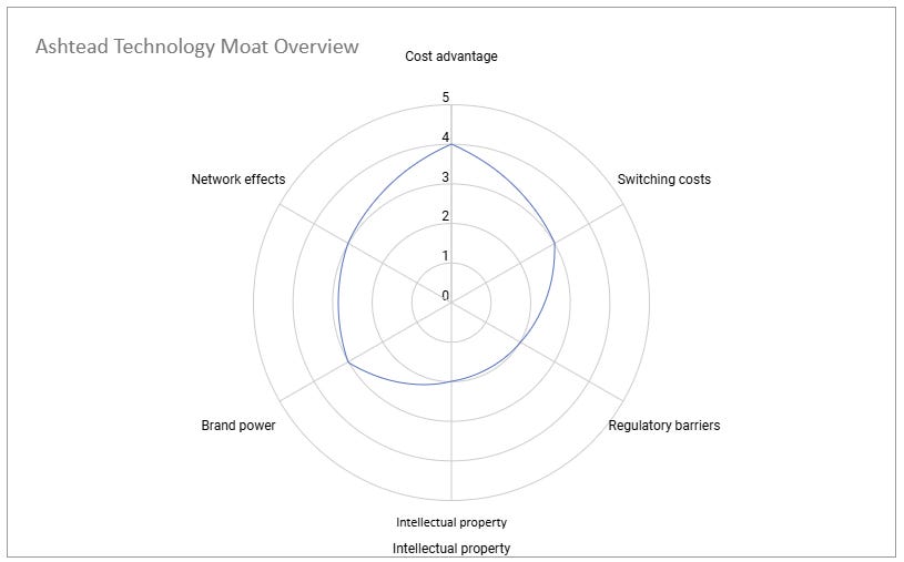 The company’s moats can be graphically presented as in this chart below: