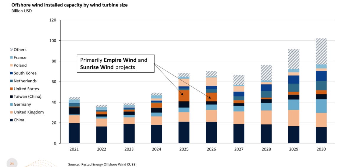 Figure 14: Offshore Wind Installed and Projected Capacity, Rystad Energy
