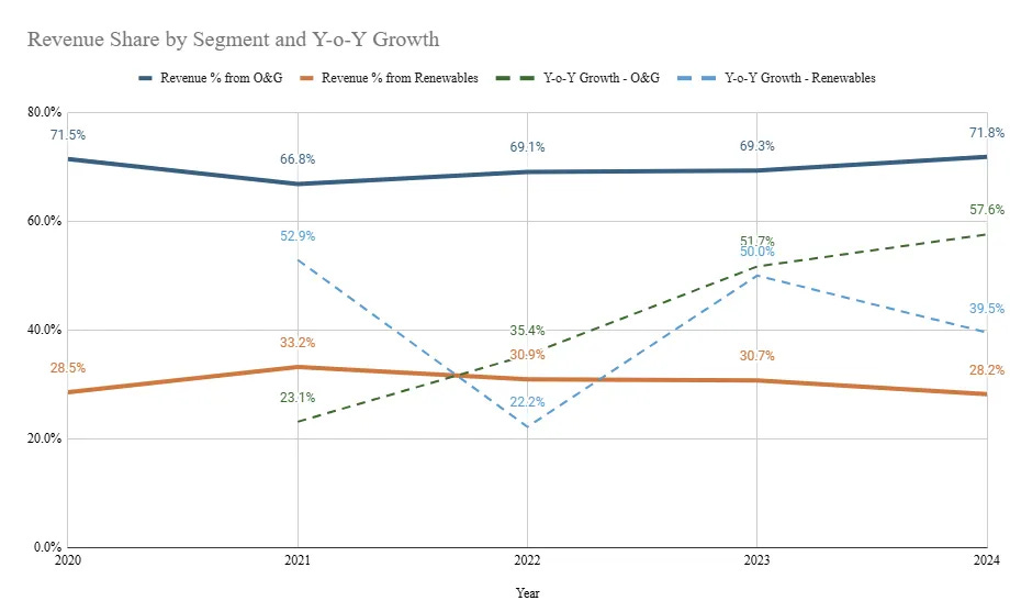 Top growth driver: Offshore O&G and renewable new projects and an increased level of IMR, decommissioning work, and strategic M&A that increase fleet density and cross-sell options—these together can sustain mid-teens topline growth if executed well.