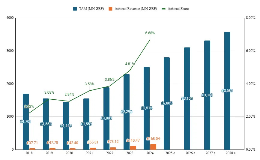 These strategic acquisitions have been instrumental in shaping the company’s current strategy development, contributing to market share gains in addition to organic growth. Ashtead Technology successfully listed on the AIM market, operated by the London Stock Exchange, in November 2021. To improve liquidity, Ashtead Technology moved to the main LSE exchange on October 6, 2025.