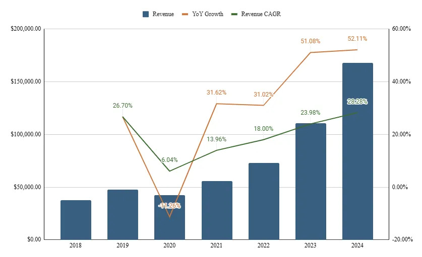 Figure 5: Ashtead Technology Revenue, YoY Growth, and CAGR, 2018-2024, from company filings and Dragon Field Investing
